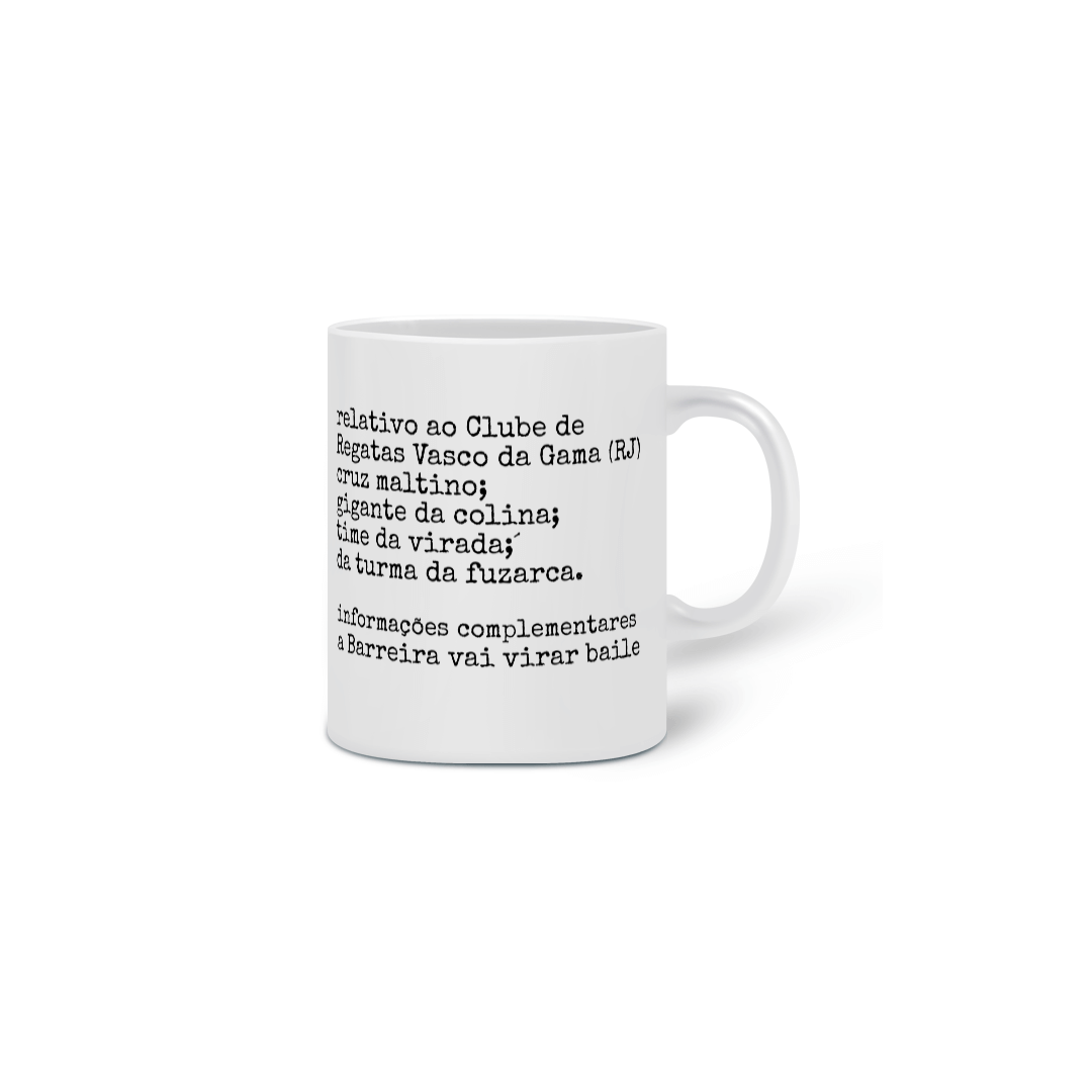 Composição: Caneca branca em porcelana, tamanho único.